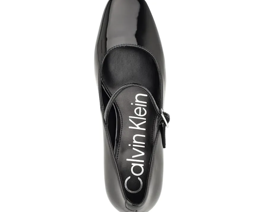 - Get ready to steal some admiring glances by wearing the chic Calvin Klein® Jatlee heels. They are designed with a square toe silhouette and stylish block heels. They have a faux-patent leather upper, man-made lining, and a padded footbed.