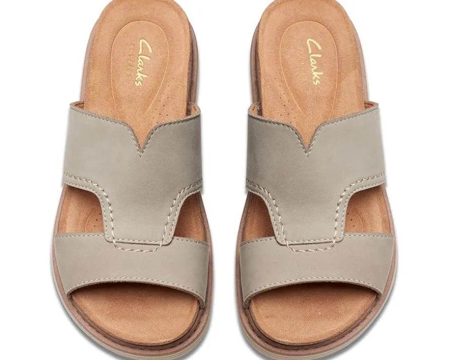 - Celebrate outdoor fun in style wearing the Clarks® Arwell Walk Sandals. The slip-on footwear features leather upper construction with polyester lining and open almond toe silhouette.