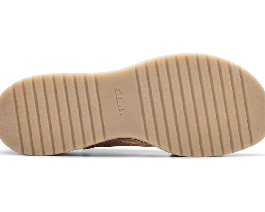 - Move out to explore the world wearing Clarks™ Kassanda Step sandals. An open toe with crossing-over wide strappy vamp and adjustable ankle strap with buckle closure ensures a supportive fit to the feet. It has leather upper, polyester lining, and rubber insole.