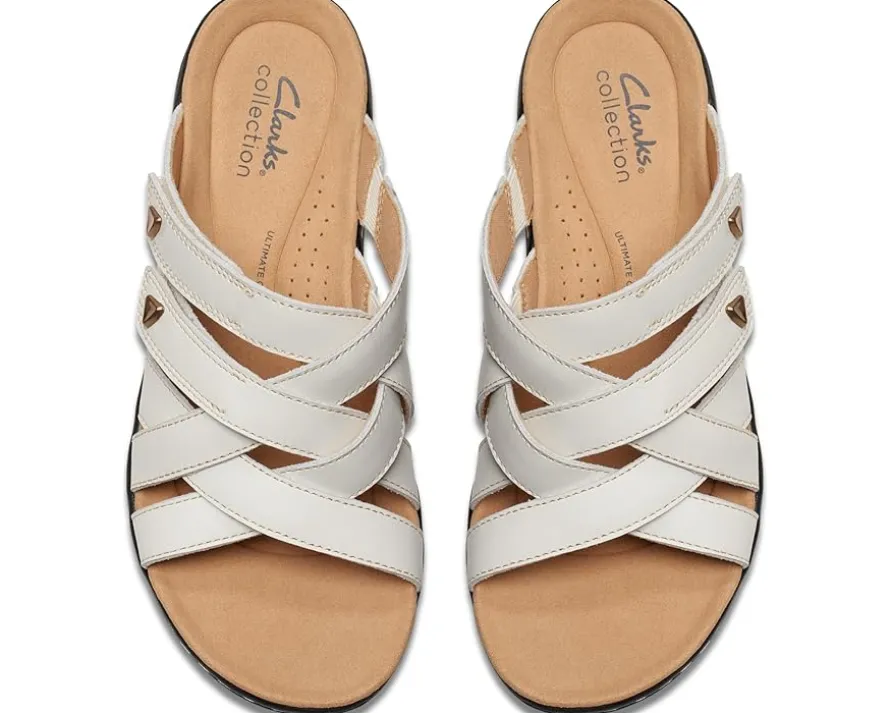 - Set the fashion mood in utmost comfort wearing Clarks™ Laurieann Bali Flat Sandals. The slip-on footwear features leather upper construction with mesh lining and rubber footbed.