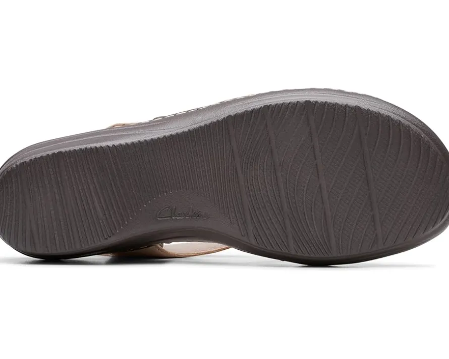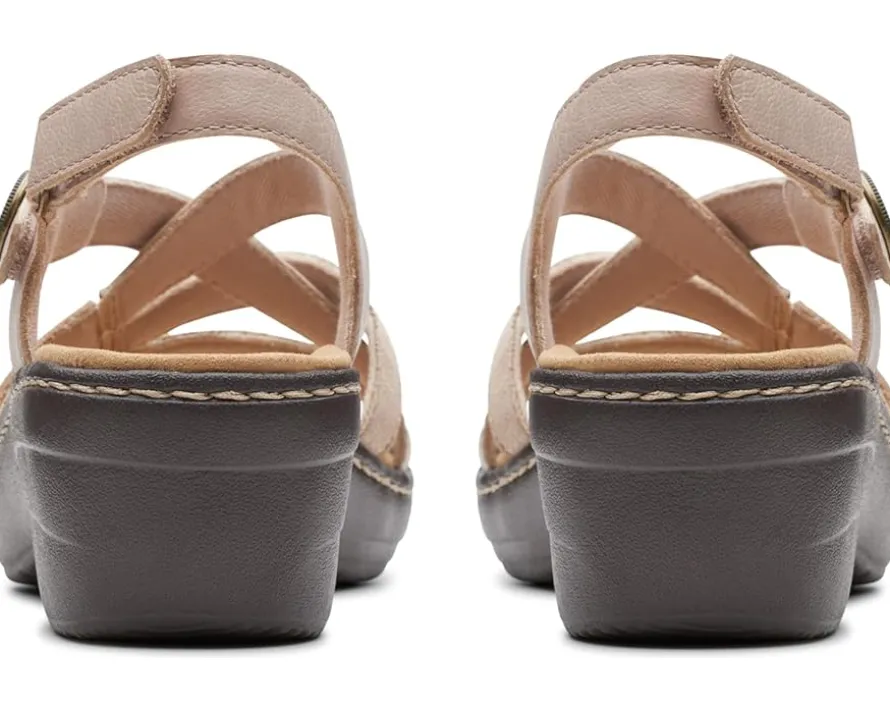 - Step into elegance and comfort with Clarks™ Merliah Bonita. These wedges boast a captivating strappy design, embracing your feet with finesse. With a secure hook & loop closure and a durable rubber insole, they offer both style and support. Elevate every step with their chic round toe silhouette.
