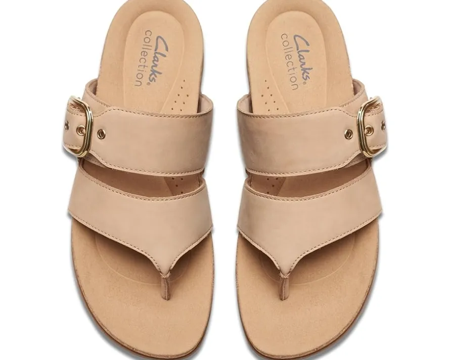 - Walk on the streets with comfort and fashionable look donning the Clarks™ Reileigh Park. These flat thong-style sandals feature open round toe design, brand detailing on the footbed, and leather upper.
