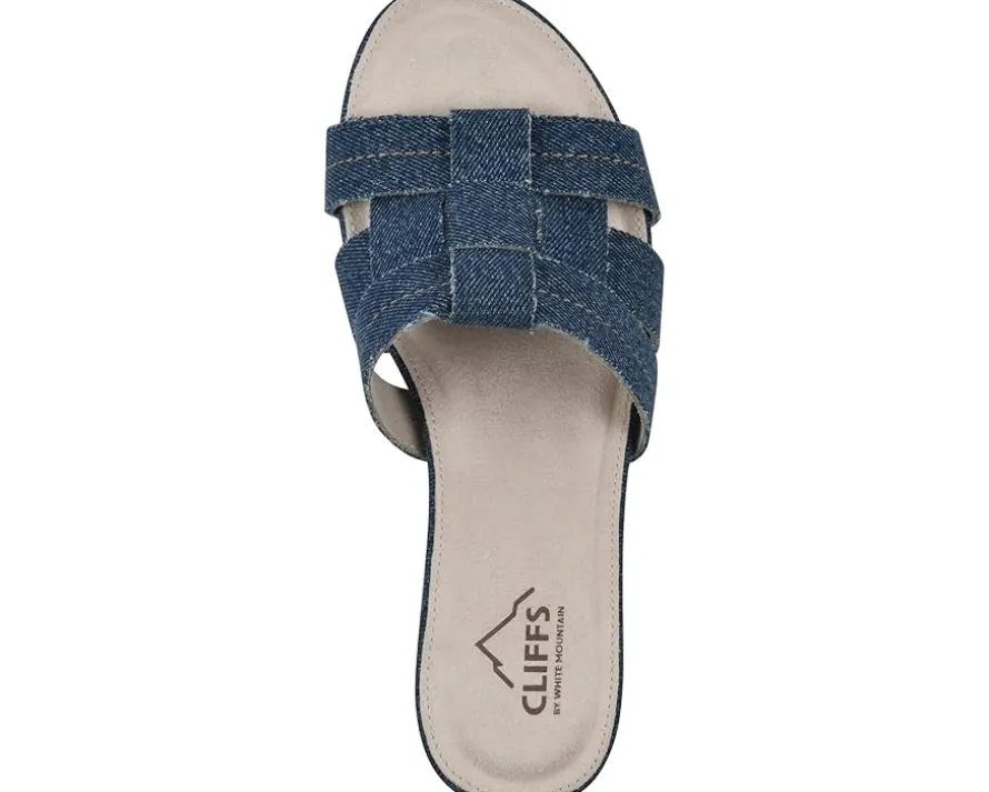 - Step into the celebration while being perfectly comfortable and stylish wearing Cliffs™ by White Mountain® Candyce Sandals. The slip-on footwear features faux leather upper construction with woven straps and open almond toe silhouette.