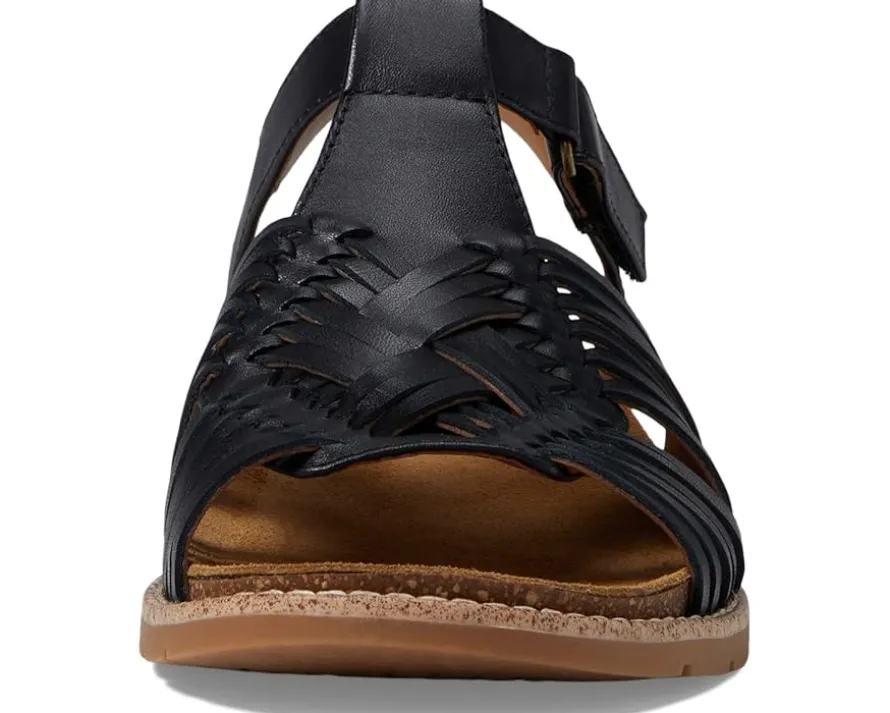 - The intricate woven leather strapped design of Comfortiva® Gladia Flat Sandals gives your feet an airy feel.