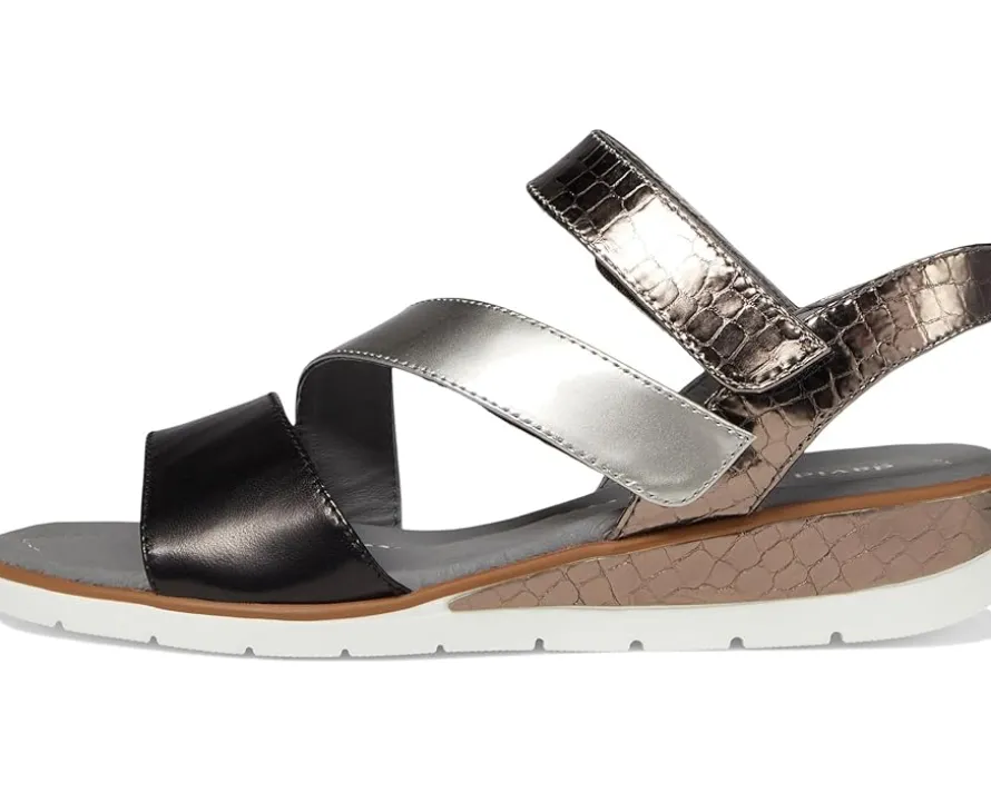 - Highlighting a tri-colored strappy leather upper and grounded on a leather-covered, memory foam cushioned insole, the David Tate® Blues Sandals are all set to become your warm weather favorite! The croc-embossed textured detailing adds an on-trend charm to these shoes while the dual-density wedge lends enhanced comfort during walks.