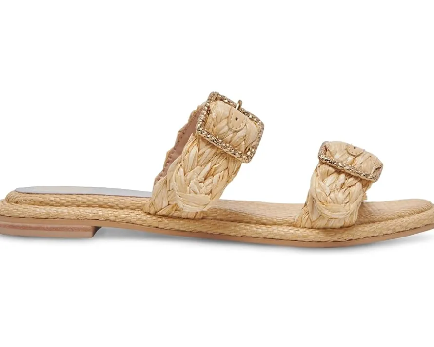 - Be it your casual day outings or weekend getaways, you will enjoy effortless style and comfort throughout the day when you put on the Dolce Vita® Alaina Sandals. Topped with braided raffia-textured faux leather upper straps and integrated with water-based faux leather lining and a cushioned faux leather insole, these slip-on shoes are perfect for long hours of wear. The shimmery buckles on the straps bring on an elegant touch to this footwear.
