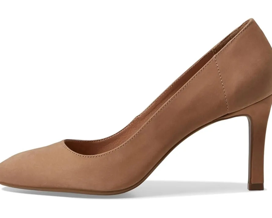 - You’ll never have to sacrifice fashion for comfort again donning the Dune London Adele. These medium-length stiletto heels feature brand detailing on the footbed, slip-on construction, and nubuck leather upper.