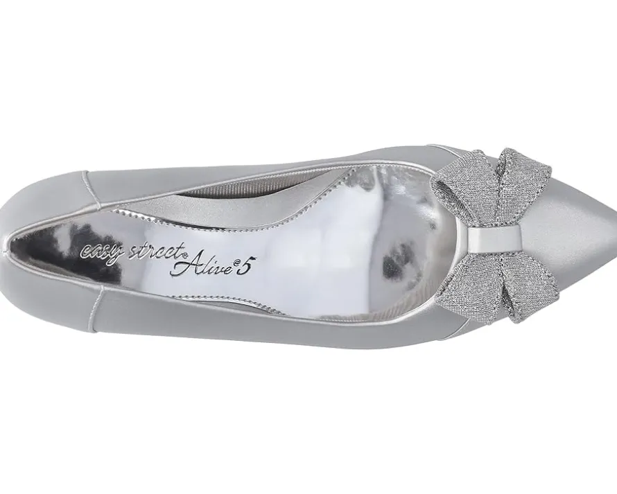 - Discover the perfect combination of style and comfort by donning the Easy Street® Devanna heels! Their faux leather upper, adorned with a fashionable bow detail, exudes sophistication and adds a charming touch to any outfit. The faux leather lining and padded insole provide extra cushioning and ensure a soft and cozy fit.