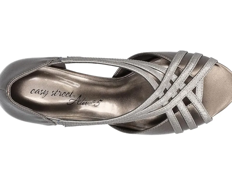 - Multiple crisscross straps define the stunning mid-top look of Easy Street® Oceana Pumps. This slip-on pair features faux leather upper construction with padded insole and stiletto heel.