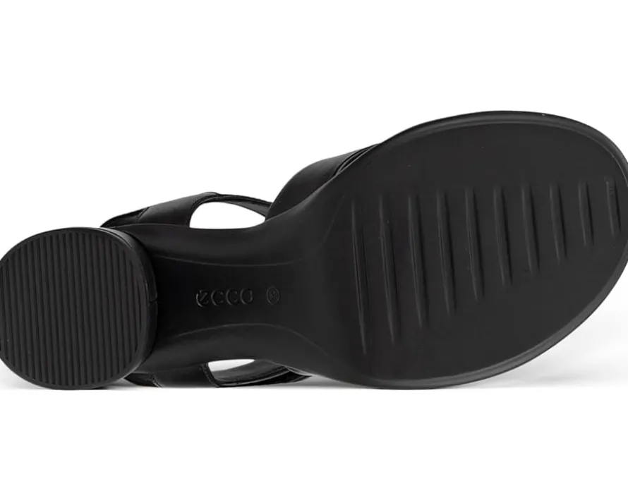- Enhance the beauty of your feet wearing the ECCO® Sculpted 55 Luxe Button. Crafted from leather upper, lining, and insole, this pair of sandals features round toe silhouette, crisscross strap detailing on the vamp, quick-fastening ankle strap for a secure and adjustable fit, block heel, and brand detailing on the footbed.