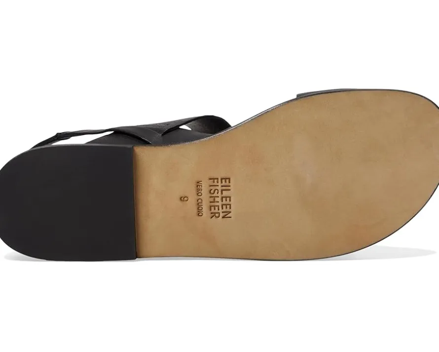 - Own your summer look wearing the Eileen Fisher® Kanza. Crafted from leather upper, lining and insole, this pair of sandals features open round toe, foam padded footbed, raw edges around the straps for an artesian look and instep strap with hook-and-loop for adjustment and entry.