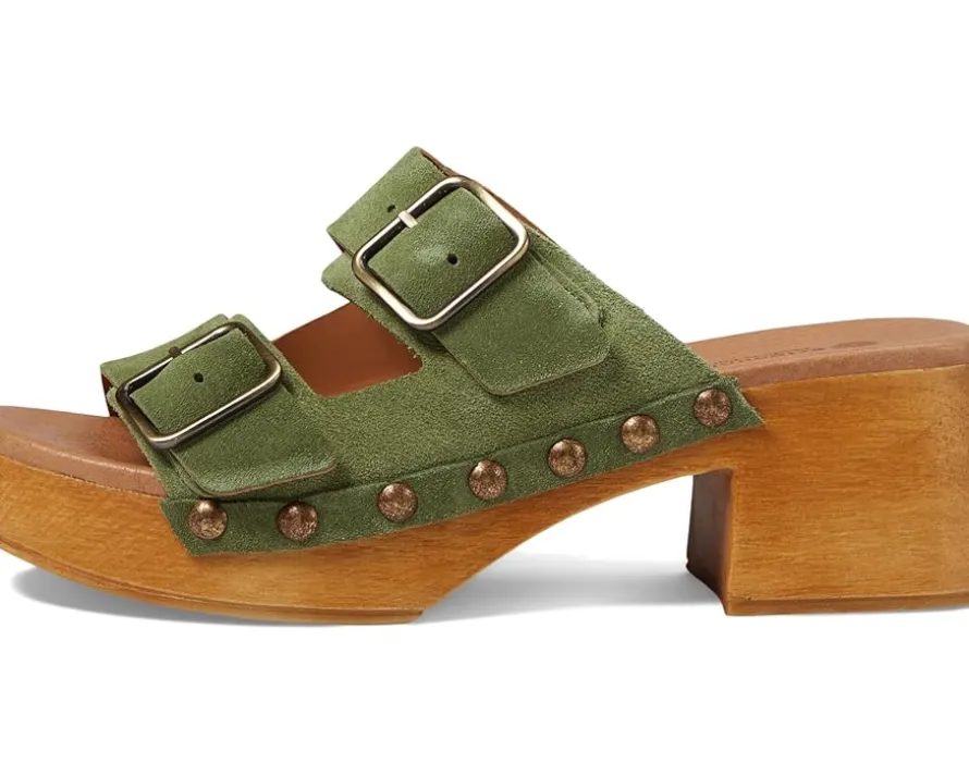 - Emphasize your comfy yet fashionable take on timeless trends wearing the Eric Michael® Austin Sandals. The slip-on footwear features functional buckles on the leather upper straps with cushioned footbed and block heels.