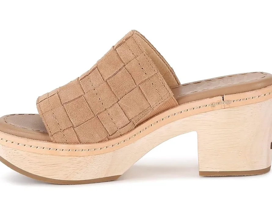 - Framed in a soft and cushioned footbed with a woven upper and a woody heel and platform, the Frye® Hazel Woven Slide Heeled Sandals are versatile and stylish enough to be paired with almost everything.