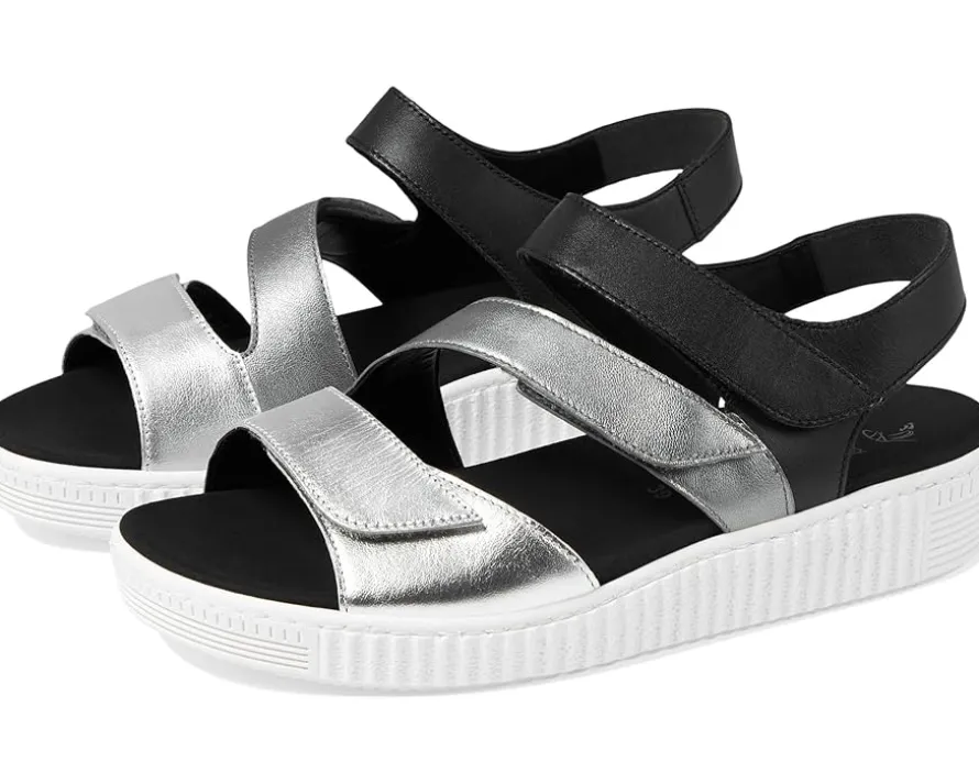 - Uplift your fashion game a notch up wearing Gabor® Gabor 43.600 footwear. It has suede/leather upper in a multi-strap design with slingback. Open toe, leather footbed and leather lining ensures superior comfort on every step. Metallic sheen adds elegance while hook-and-loop strap allows ease of wearing.