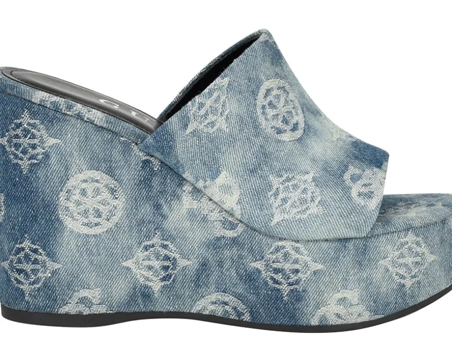 - Barefoot bliss, modern muse in the GUESS® GWYenise: Almond open toe, slip-on closure, man-made PU upper, and lining comfort. Elevate your look effortlessly with the perfect wedge height for day-to-night chic. Crafted for trendsetters since 1981, GUESS blends global flair with everyday luxury. The synthetic rubber outsole ensures stability, making these wedge sandals your go-to for a young, adventurous lifestyle.