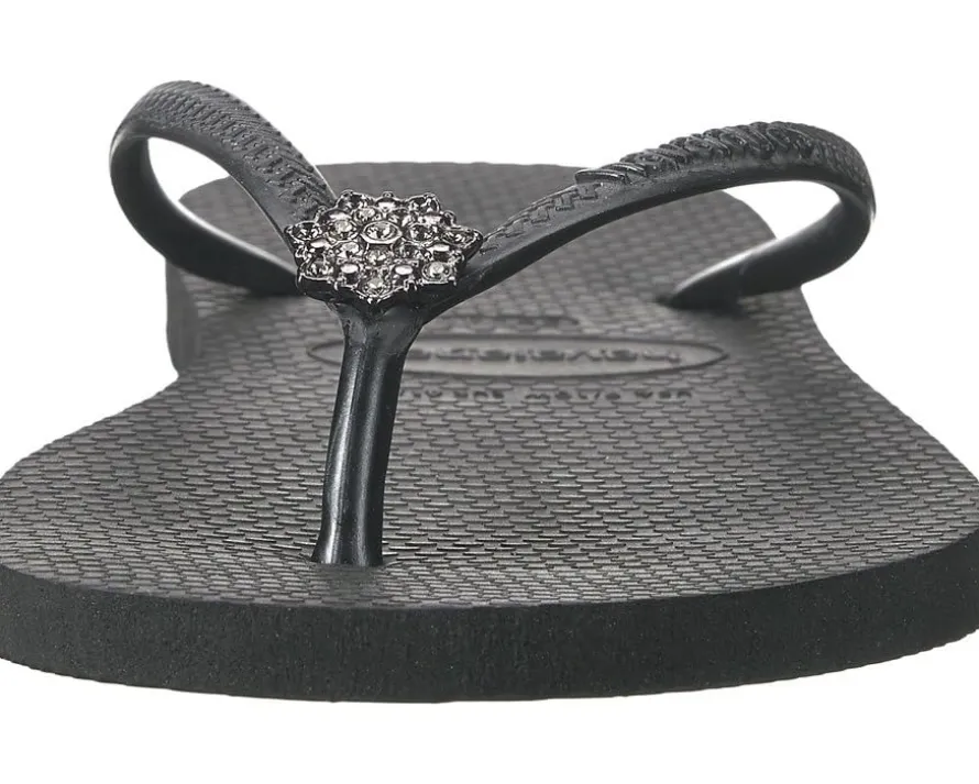 - Textured rubber upper with glittering jewel embellishment.