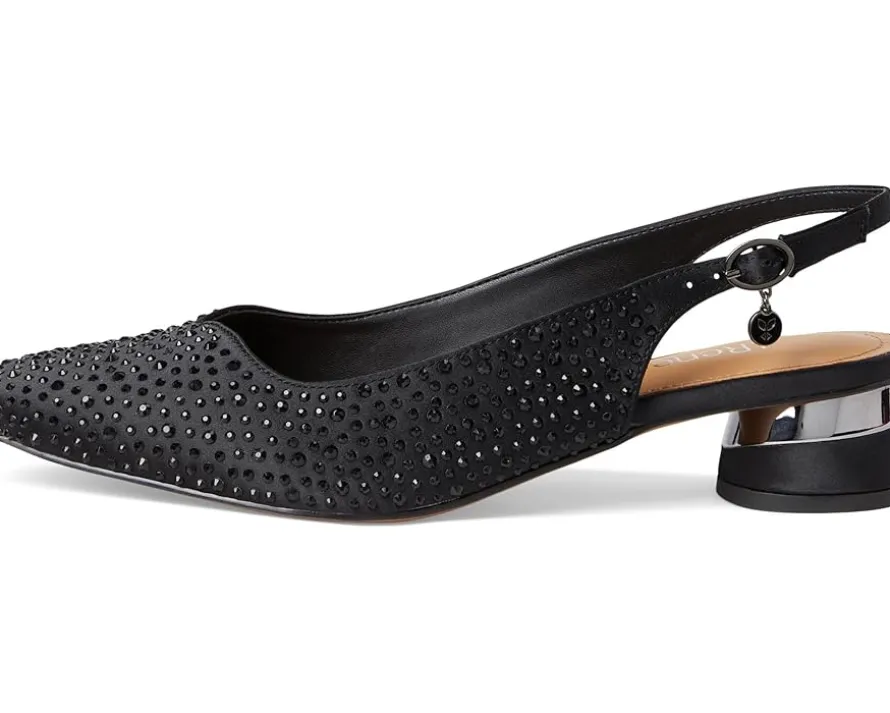 - Dance the night away wearing the J. Renee® Baline Heels and be the talk of the party! Unveiling a sparkling and elegant profile, the shoes come fashioned in a square toe silhouette with a rhinestone-embellished fabric upper, a soft synthetic lining, and a padded memory foam and latex footbed. They offer an adjustable fit with the buckled slingback strap and lend some added height with the sleek two-tone block heel.