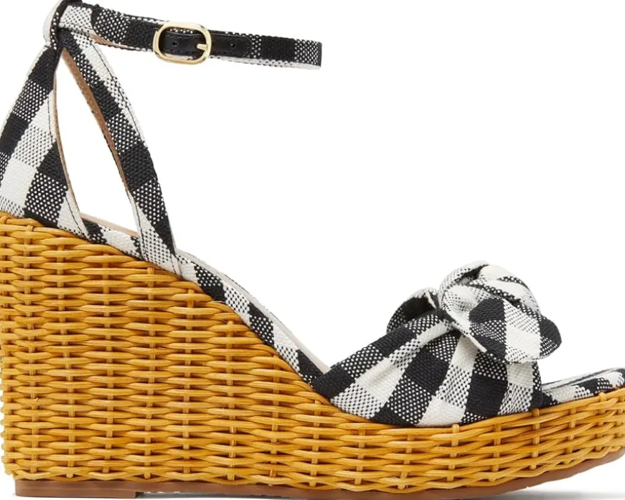 - Step into spring with Kate Spade New York® Tianna Wicker, where chic meets comfort. Elevate your style with these suede wedges, boasting a wicker-wrapped heel that adds a touch of whimsy to picnics or patio parties. The backstrap closure ensures a secure fit, while the leather insole guarantees all-day comfort for every step.