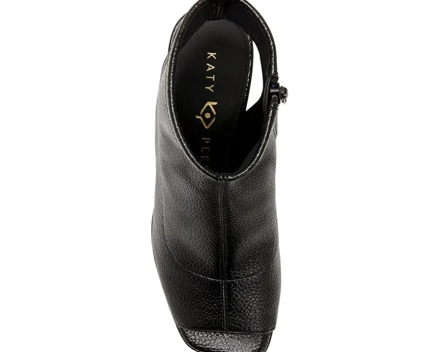 - The Katy Perry® Surprise Shootie is lofted by a chunky block heel platform and features an open squared-off toe that will take you through warmer days and cooler nights. The footwear has an ankle-high design and snake-inspired prints. With a padded polyurethane footbed, man-made lining, and polyurethane upper, the shoes give timeless choice.