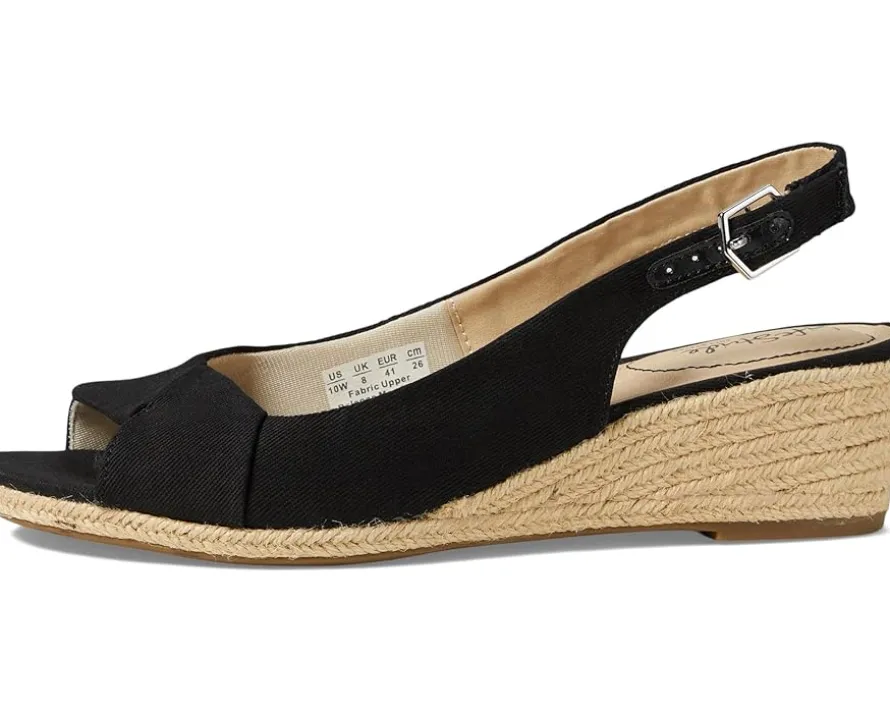 - Slingback strap with adjustable buckle closure.