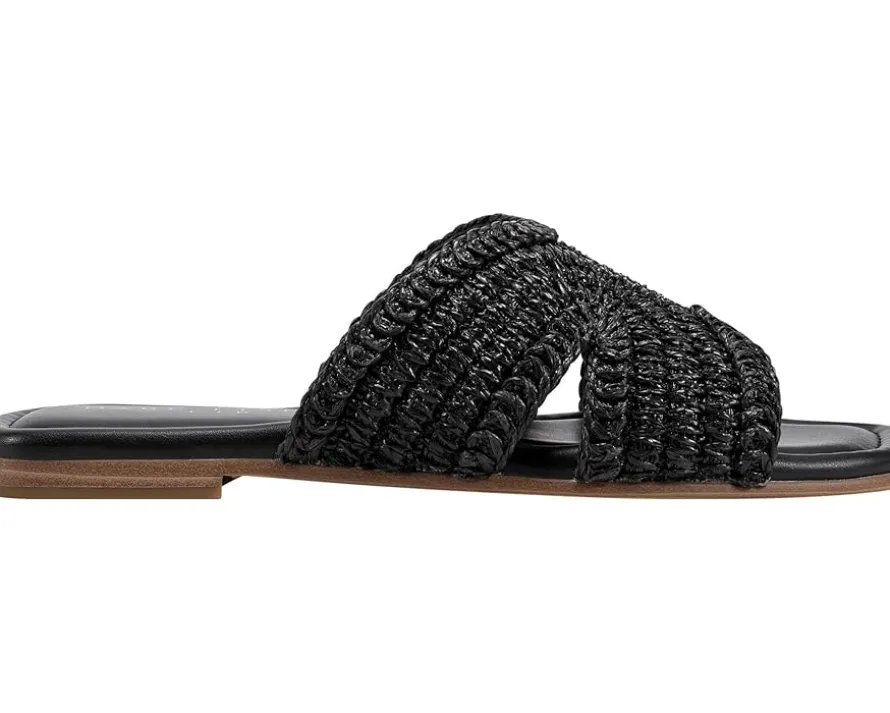 - Designed to enhance your go-to style and comfort during those warmer days, the Marc Fisher LTD™ Narda Flat Sandals feature a breezy and lightweight construction with a textured woven raffia (synthetic) upper, a synthetic lining, and a lightly padded insole. Coming in a slip-on style, the shoes are easy to put on and off.