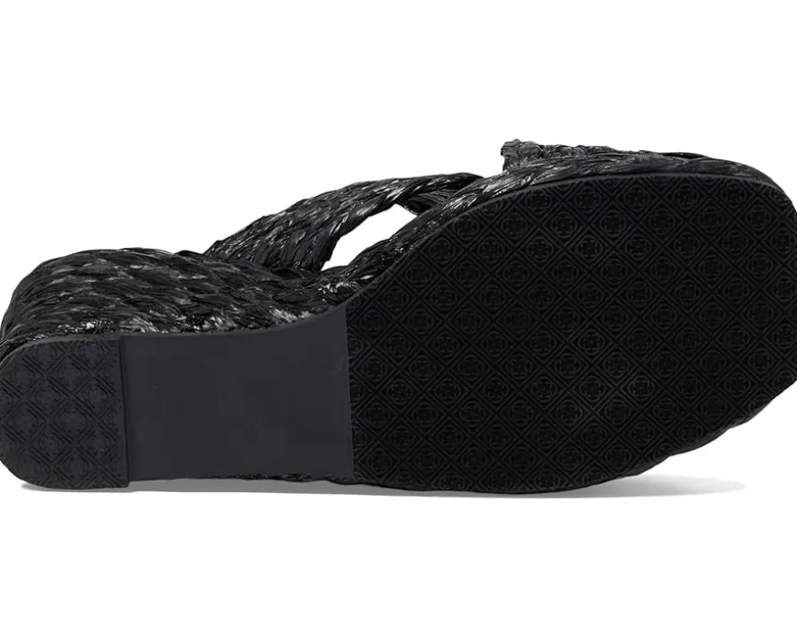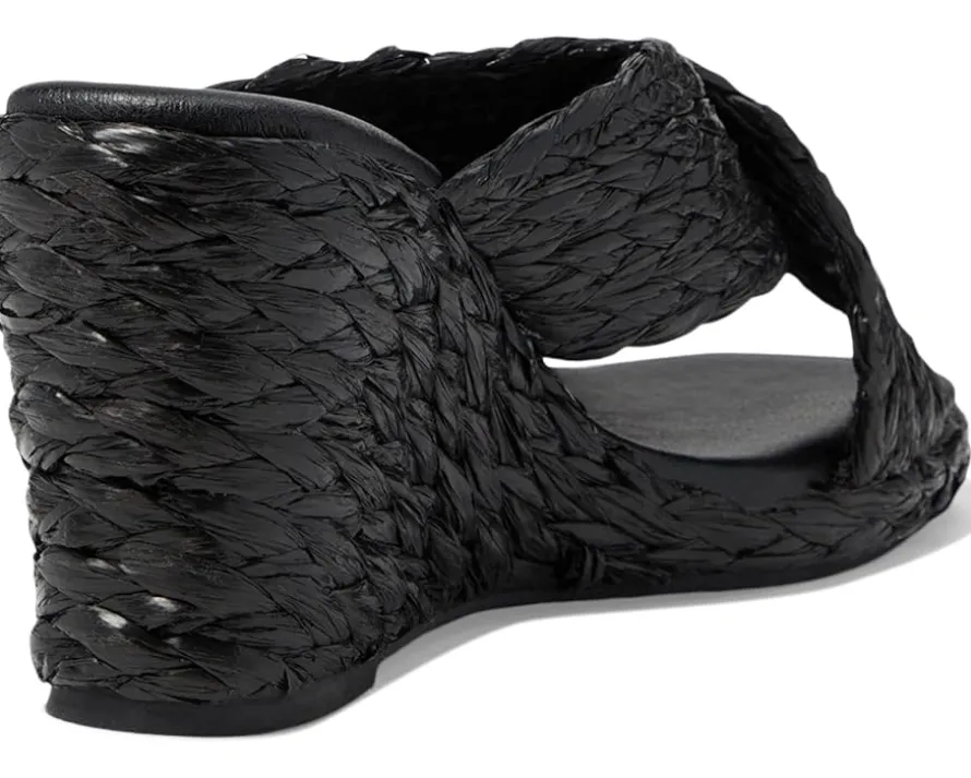 - Crossover strappy raffia upper.