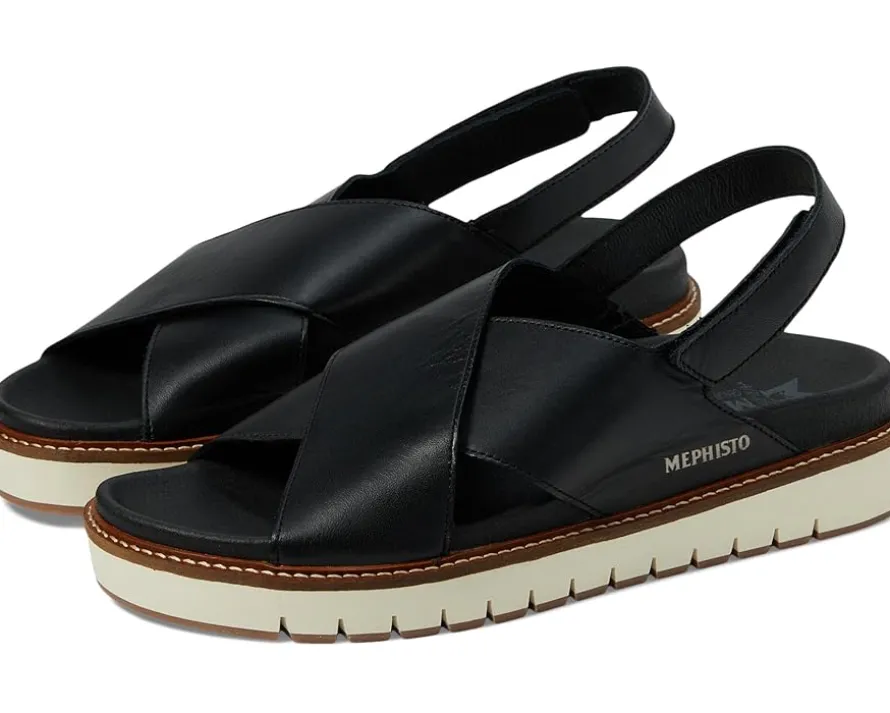 - Let the classic pair of Mephisto® Blanche Flat Sandals be your style ally for any journey. The slip-on footwear features leather upper and lining construction with slingback strap closure.