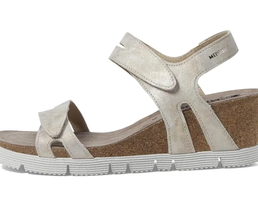 - Crafted with a cork midsole that offers all-day comfort, the Mephisto® Emelia sandals are perfect to pair with different outfits and styles. The multicolored Reptile print on the straps adds a colorful twist to your outfits. These platform sandals come with an ankle strap with a velcro closure for a perfect fit. The AIR-RELAX technology of these sandals makes them a comfortable choice for all-day wear. Get ready for a casual outing or party by wearing these printed sandals.