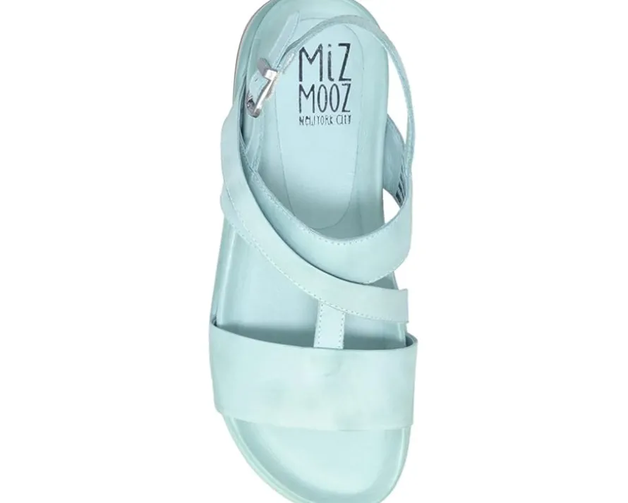 - T-strap design with a thick platform brings a modern twist to the Miz Mooz® Tomas Flat Sandals. The rounded toe footwear features leather upper, lining and insole construction with buckle adjustable slingback strap closure.