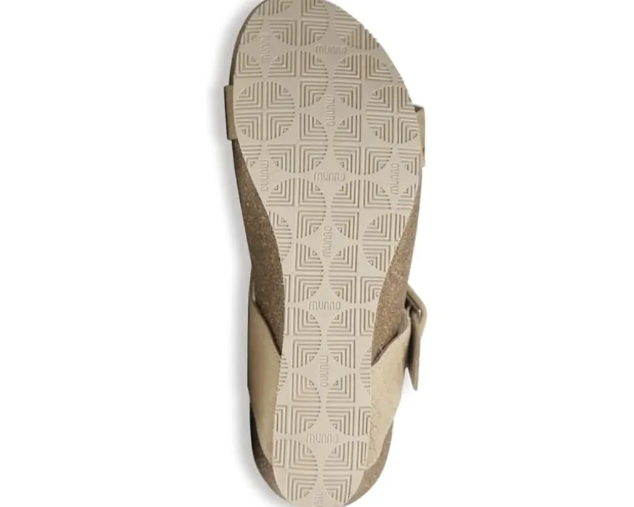 - Let that contemporary take on fashion define your style as you wear the Munro® Ronda Flat Sandals. The slip-on footwear features suede upper construction with T-strap, buckle detail, and open toe silhouette.