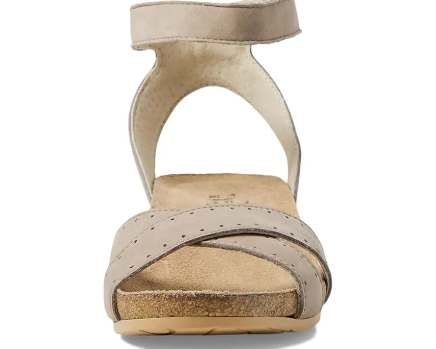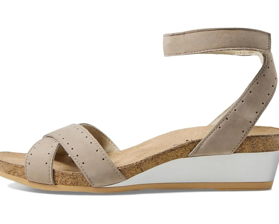 - Cushioned, suede-covered anatomic cork and latex footbed molds to the shape of the foot.