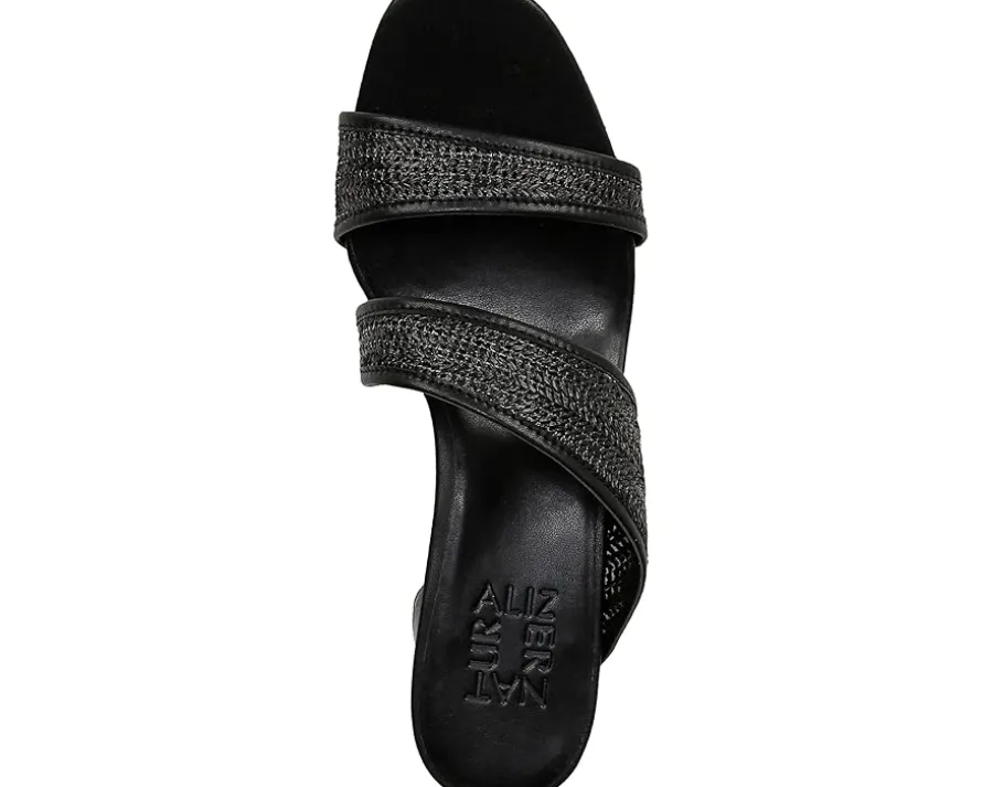 - Featuring Contour+ Comfort technology, the Naturalizer® Inez2 Slides offer all-day comfort and a perfect fit. The polyurethane straw upper features a two-strap design that offers durable support and a stylish appeal. These heeled sandals come with a polyurethane lining and foam insole. From matching your party dresses to formal outfits, these slide sandals work for different occasions.