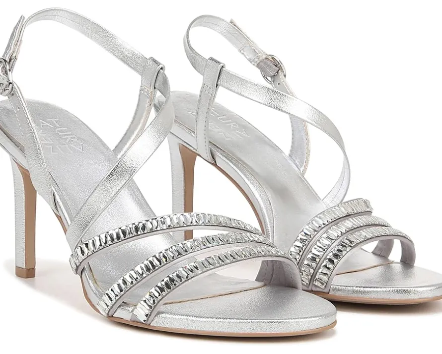 - Featuring Contour+ Comfort technology that offers all-day comfort and a premium fit, the Naturalizer® Kimberly 2 sandals are perfect to pair with your party gowns and stylish dresses. The adjustable buckle closure offers a secure fit. One of the highlights of these strappy sandals is their crystal detailing on the straps that add a glamorous look. Walk with confidence and style by wearing these heeled sandals.
