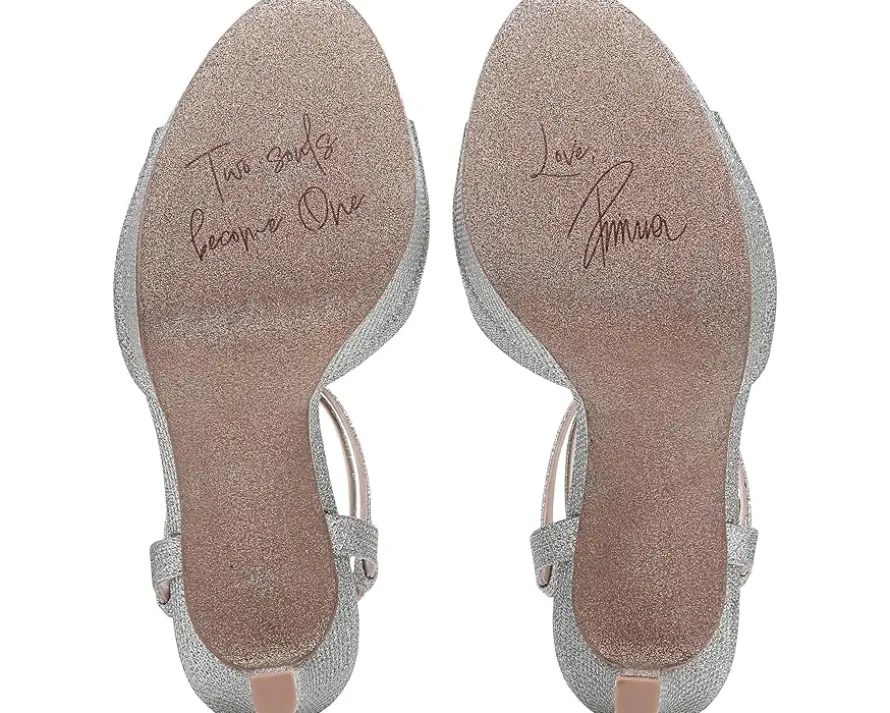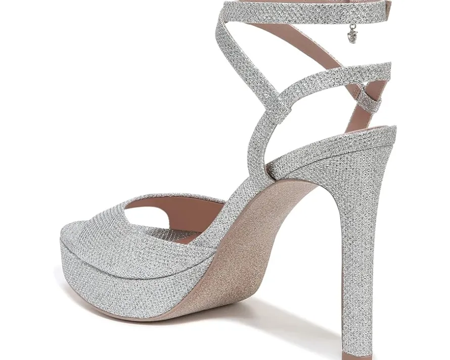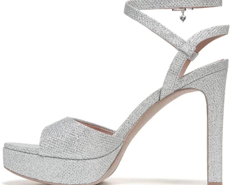 - Adjustable buckle closure on the ankle strap with heart charm embellishment.