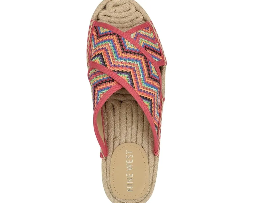 - Add a colorful and rustic touch to your look by wearing the Nine West® Hamden. The slip-on style flats have an open-round toe design with a crisscross strap design that complements the look. The textile upper, man-made polyester lining, and comfortable footbed ensure prolonged wear, making this pair of footwear a must-have in your collection.