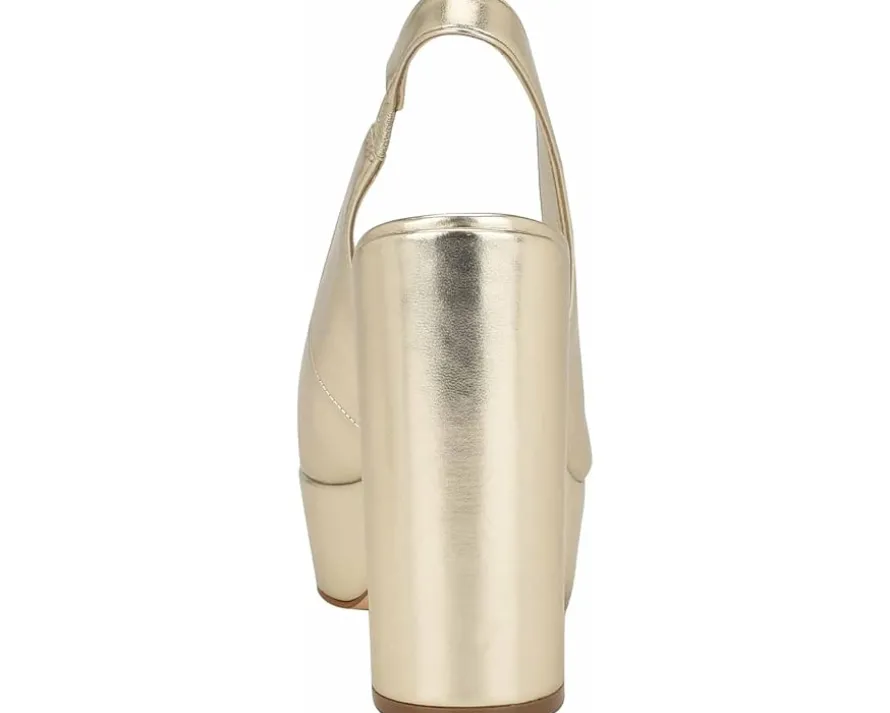 - Walk confidently wearing the high class Nine West® Trins. Crafted from leather upper, this pair of pumps features almond toe design, slip-on style with slingback strap, and block heel for a polished look.