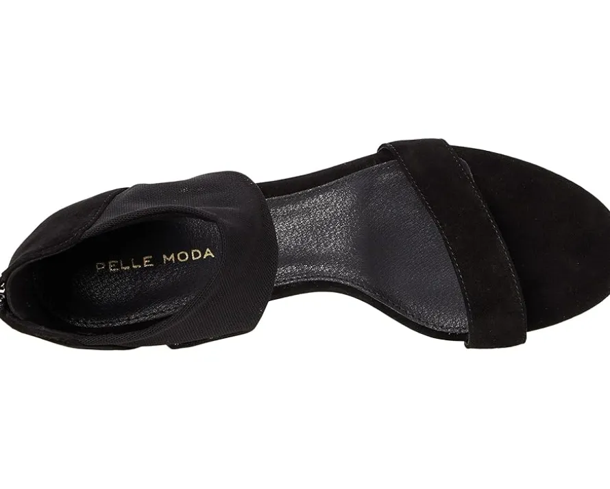 - The striking Pelle Moda® Elvi pump makes a bold statement with a smooth suede upper finish, an open toe with single strap across the vamp, and a stretch mesh ankle cuff.