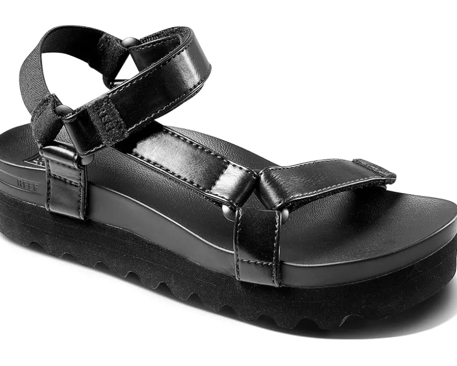 - Let’s be a little cagey, as in straps that hug your foot all the way around, including a comfy elastic backstrap. The Reef® Cushion Rem Hi features our signature cushiony, bouncy footbed, with ultimate arch support, heel cupping, and a genuine cork topsheet. Best of all, these sandal’s straps are made from 100% post-consumer plastic material, so you can feel good about them in every way. A layered, on-trend sole takes these platform sandals up a notch, so to speak. Cute, comfy, and up for anything.