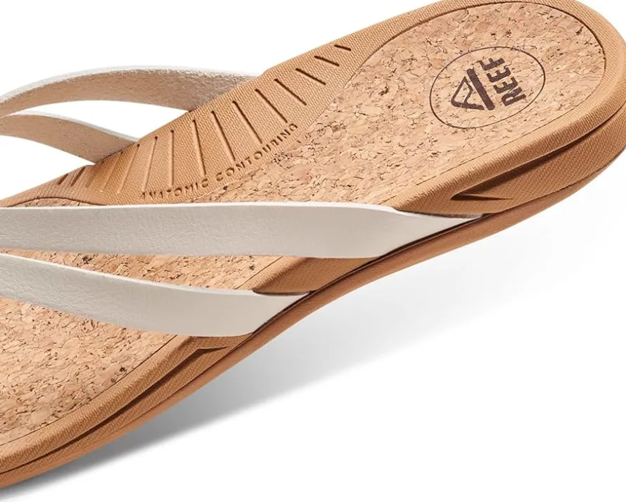 - Grab that charming touch for your homie look wearing the Reef® Pacific Joy. This flip flop features slip-on construction, brand detailing on the footbed, and double strap detailing offers an elegant look. The sandals have molded EVA footbed with high-character vegan leather cover.