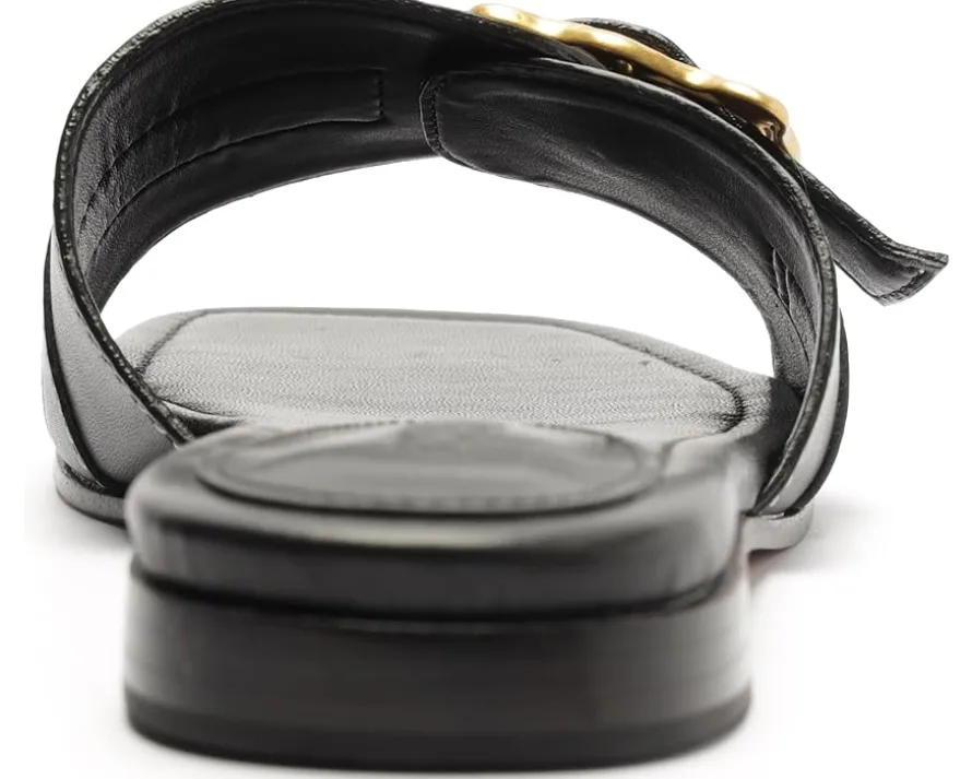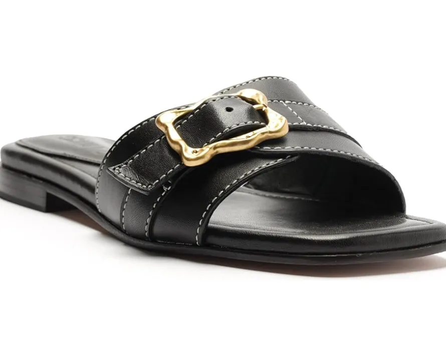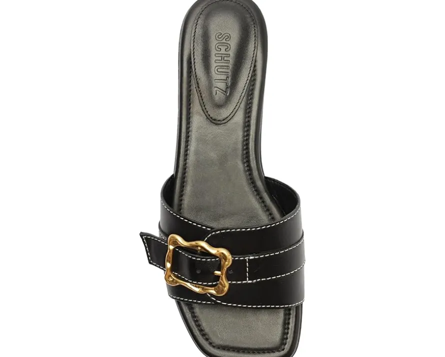 - Dive into the seamless sophistication embodied by the Schutz® Wavy Flat, a harmonious blend of fashion and ease. Crafted with supple leather upper, it features a sleek buckle for a touch of sophistication. The leather lining and outsole ensure durability and premium quality. With a foam insole, it offers cushioned support for all-day wear. Slip into chic simplicity with the slip-on style, perfect for every occasion.