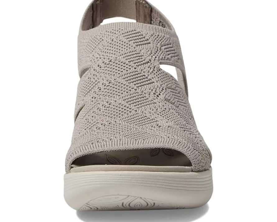 - Experience a comfortable stride as your walk around wearing SKECHERS® Pier-Lite – Memory Maker Shoes that come in a pull-on style and a vegan construction. The sandals are crafted with a crochet knit upper, crochet knit lining, and luxe foam® cushioned comfort footbed. These feature an open round toe shape and an elasticated back strap for a secure fit.