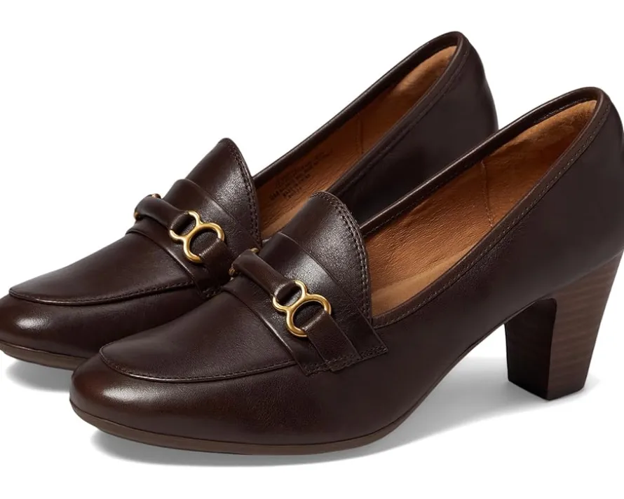 - Keep going through the day comfortably by wearing Sofft® Leona pumps. The moc toe with belt details makes it elegant. Slip-on style pumps are crafted from leather upper, lining, and footbeds.