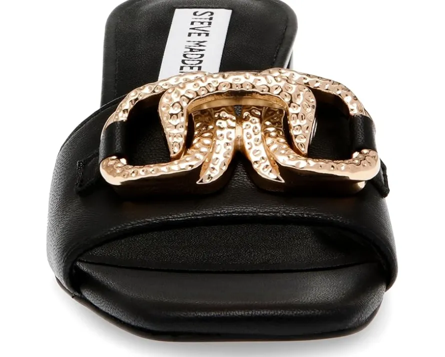- Showcasing a boho-inspired design with woven raffia accents, a gleaming chain-link hardware, and an open square toe, the Steve Madden® Santana is all set to give you a knockout style during those warm weather days. These sandals are made with a synthetic upper, lining, and insole and look more appealing with the raffia-wrapped block heel.