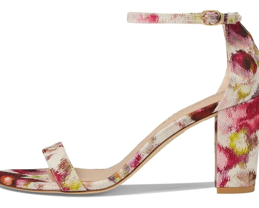 - Discover the harmony of style and comfort wearing Stuart Weitzman® Nearlynude: where cotton upper meets leather lining luxury. Cushioned comfort from EVA insoles, secure your style with ankle strap Buckle closure. Designed for elegance with an open toe and supported by a leather outsole, elevate every step with a stable block heel.