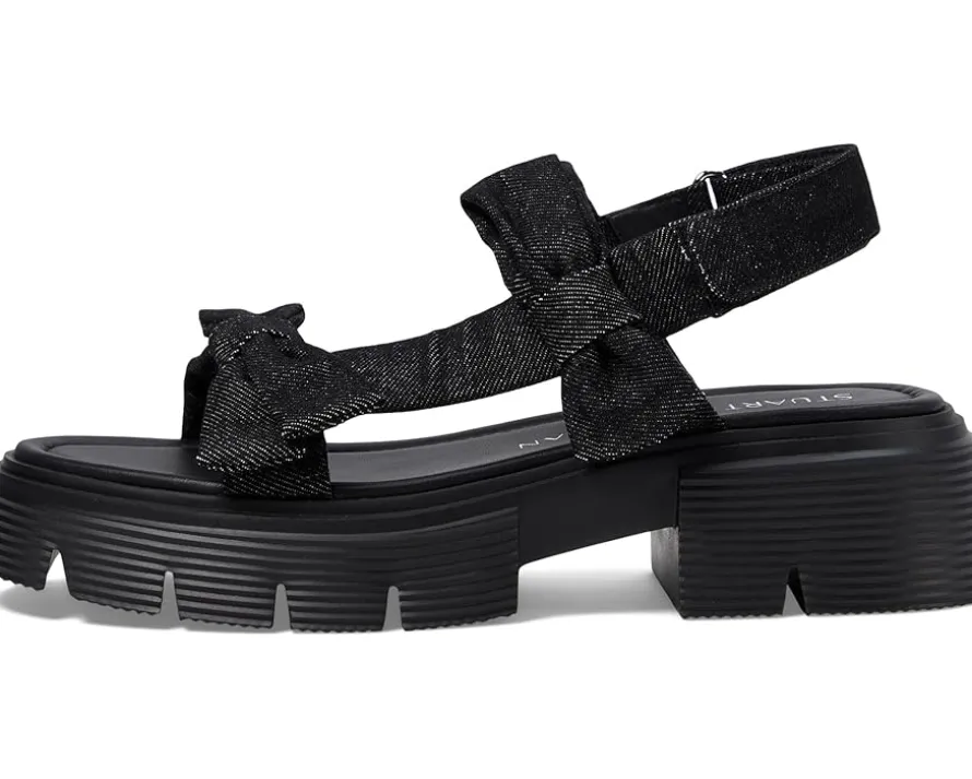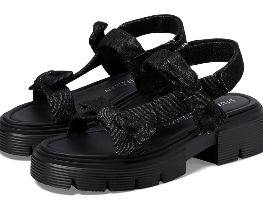- Add a modern look to your outfits without compromising comfort wearing the Stuart Weitzman® Sofia Nolita Sandal. The low-top sandals are beautifully designed with a vintage strappy denim upper with double bow detail, thermoplastic polyurethane lining, and synthetic rubber footbed. The hook-and-loop strap at the back offers a secured fit and the chunky block heel craete a statement look effortlessly.