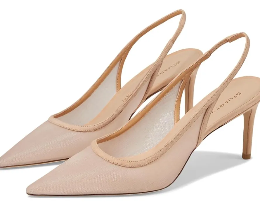 - Make a classy and elegant addition to your wardrobe with the Stuart Weitzman® Stuart 75 Slingback Pumps. Flaunting a closed pointed toe coupled with a slender stiletto heel, the shoes standout for their timeless appeal. These are crafted with a durable leather upper with a stretchy slingback strap for a secure fit, a breathable leather lining, and a padded EVA footbed for enhanced cushioning and support.