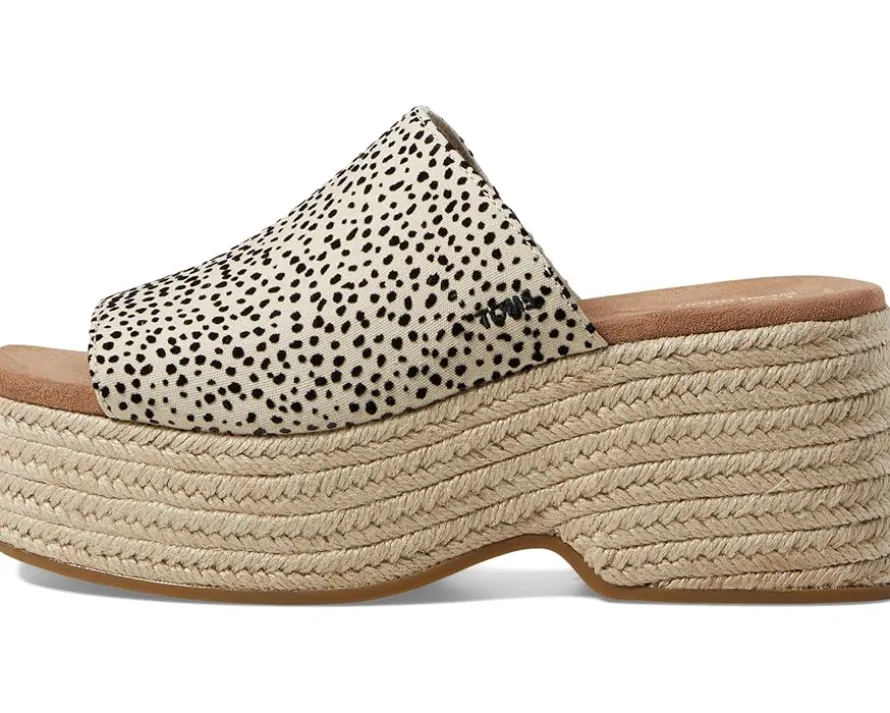 - Walk in comfort and style by wearing the TOMS® Laila Mule sandals. The slip-on style sandals have an open-round toe design, high platform heels, and a sleek silhouette. These platform heels have textile cotton upper, high rebound comfort OrthoLite® Eco X40 Hybrid™ insoles, and polyester lining for added comfort.