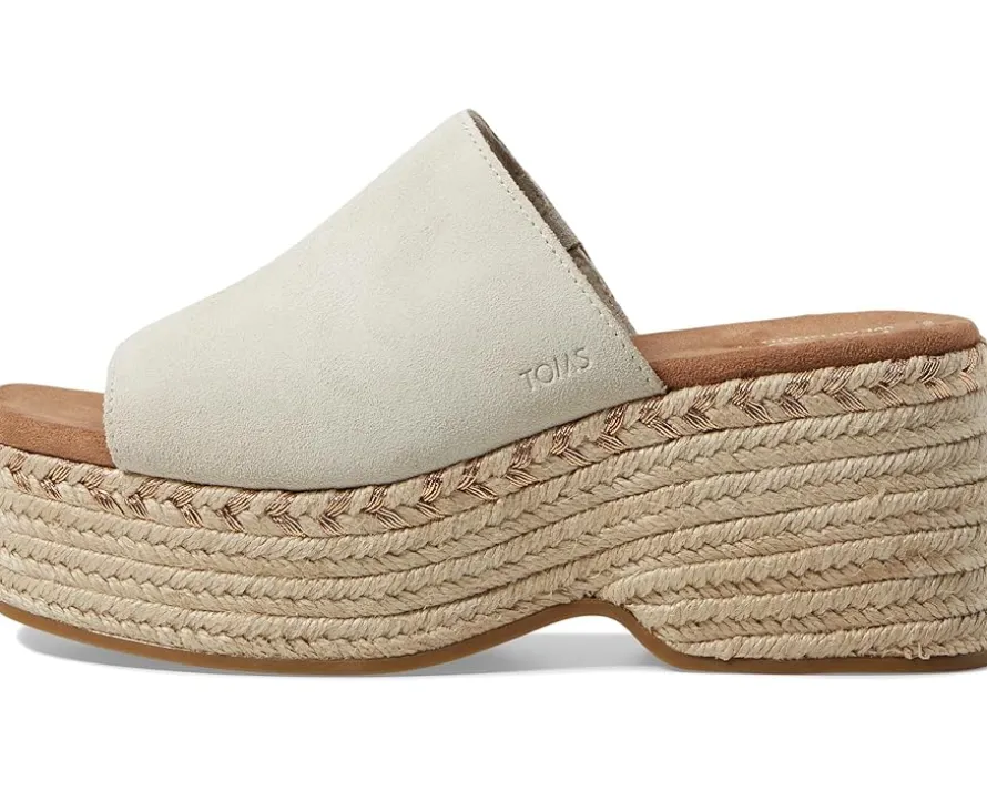 - Walk in comfort and style by wearing the TOMS® Laila Mule sandals. The slip-on style sandals have an open-round toe design, high platform heels, and a sleek silhouette. These platform heels have textile cotton upper, high rebound comfort OrthoLite® Eco X40 Hybrid™ insoles, and polyester lining for added comfort.