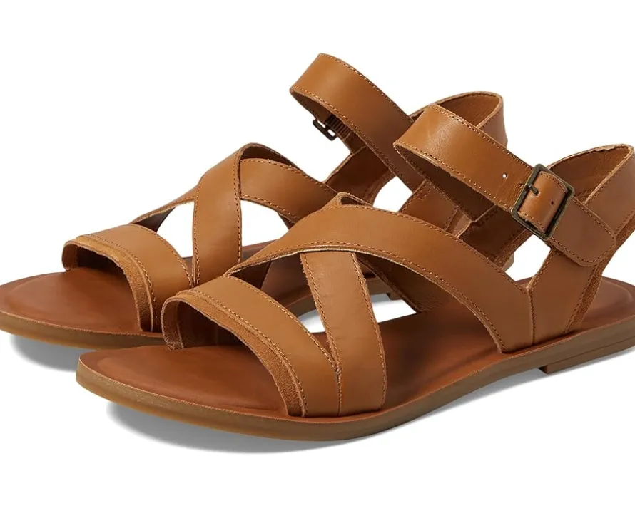 - Crafted from leather and suede upper, the TOMS® Sloane sandals are designed for modern women. This pair of flats features open round toe, strap detailing allover, non-removable OrthoLite® Eco LT-Hybrid™ insole for enhanced comfort and breathability made with eco content including hybrid materials, bio-oil and recycled rubber and ankle strap with adjustable buckle closure..