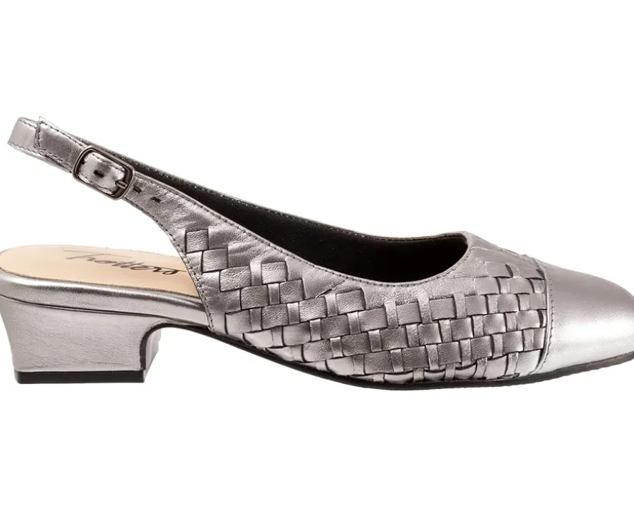 - Elevate your style with the Trotters® Dea Woven heel.